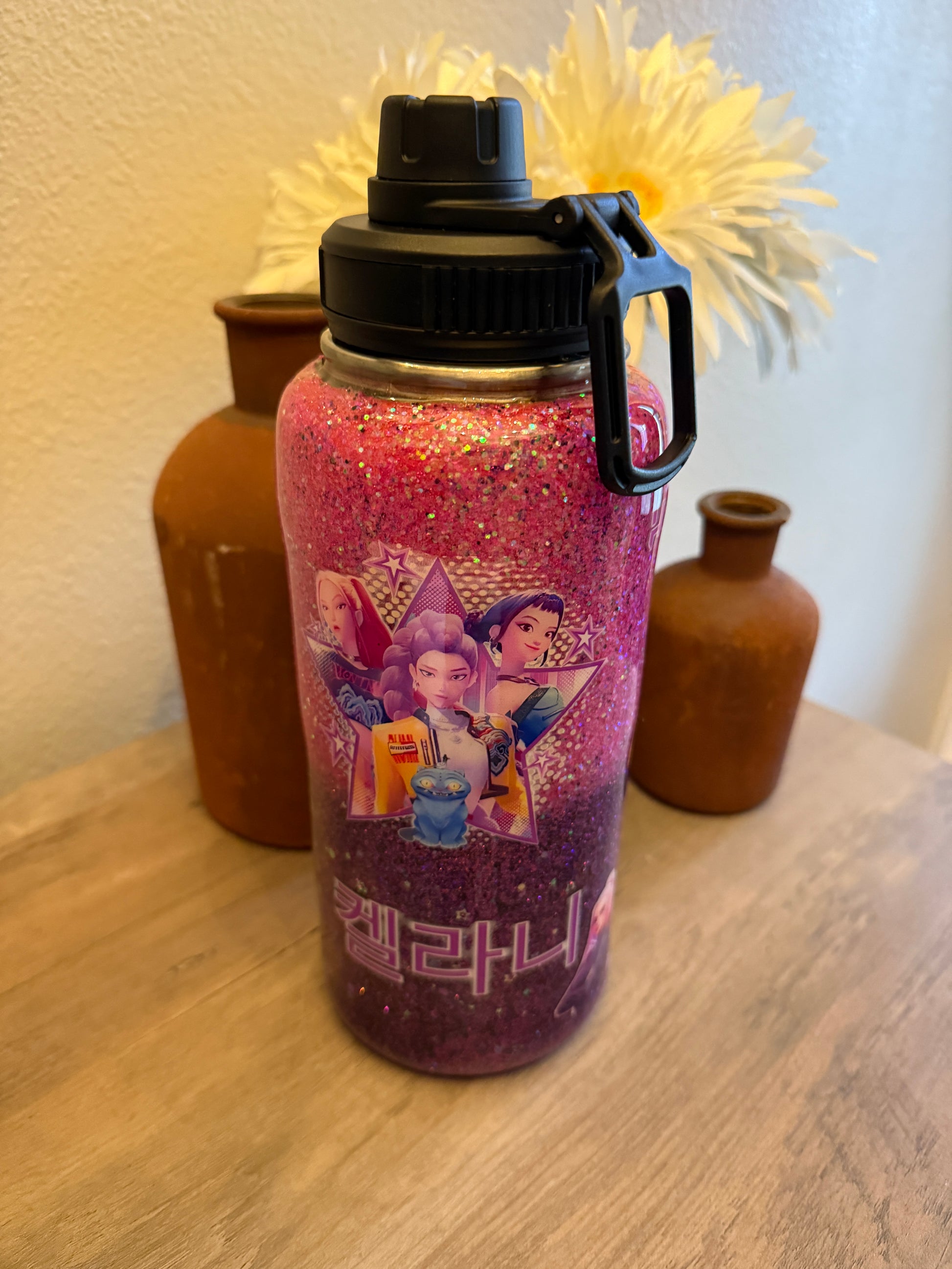 Stay hydrated in style with this dazzling 32oz Glitter Water Bottle! Featuring a bold sparkle background and vibrant custom character artwork, this bottle is perfect for showing off personality while keeping drinks cold and refreshing. Its large capacity makes it great for school, sports, workouts, or everyday use.