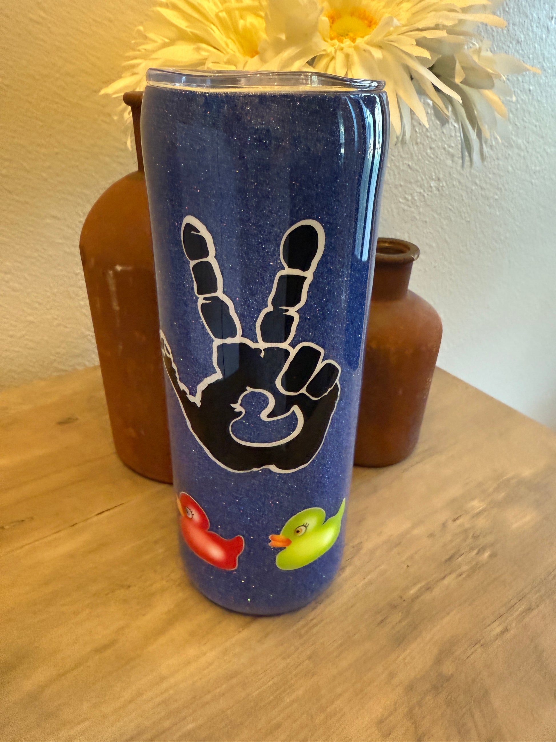 Hit the road in style with this 20oz Epoxy Jeep Duckie Tumbler! Featuring a colorful jeep design with cheerful rubber duckies and a bold glittery blue background, this tumbler is perfect for jeep lovers and anyone who enjoys a playful twist on adventure.