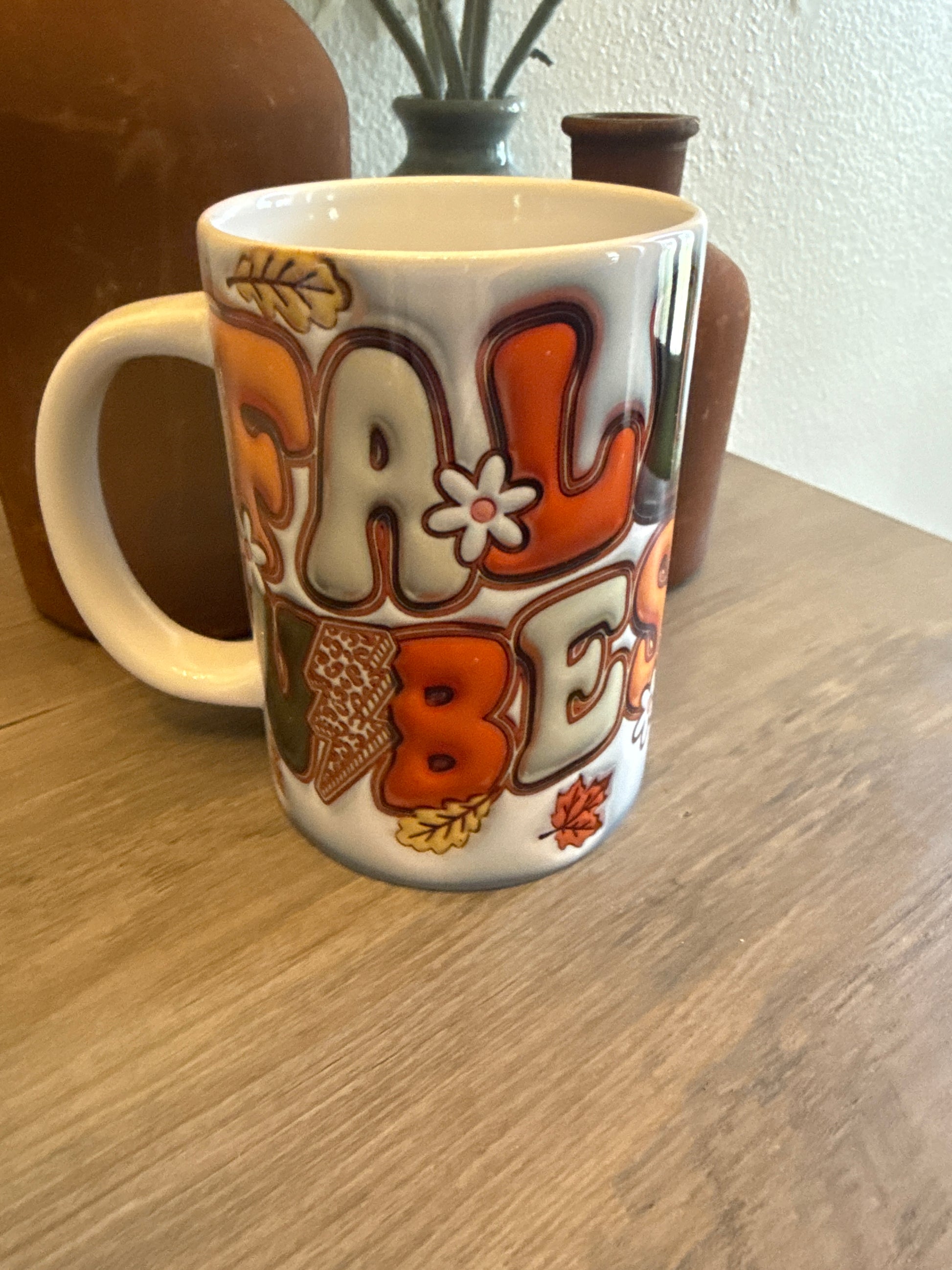 Durable ceramic mug with retro puff fall design