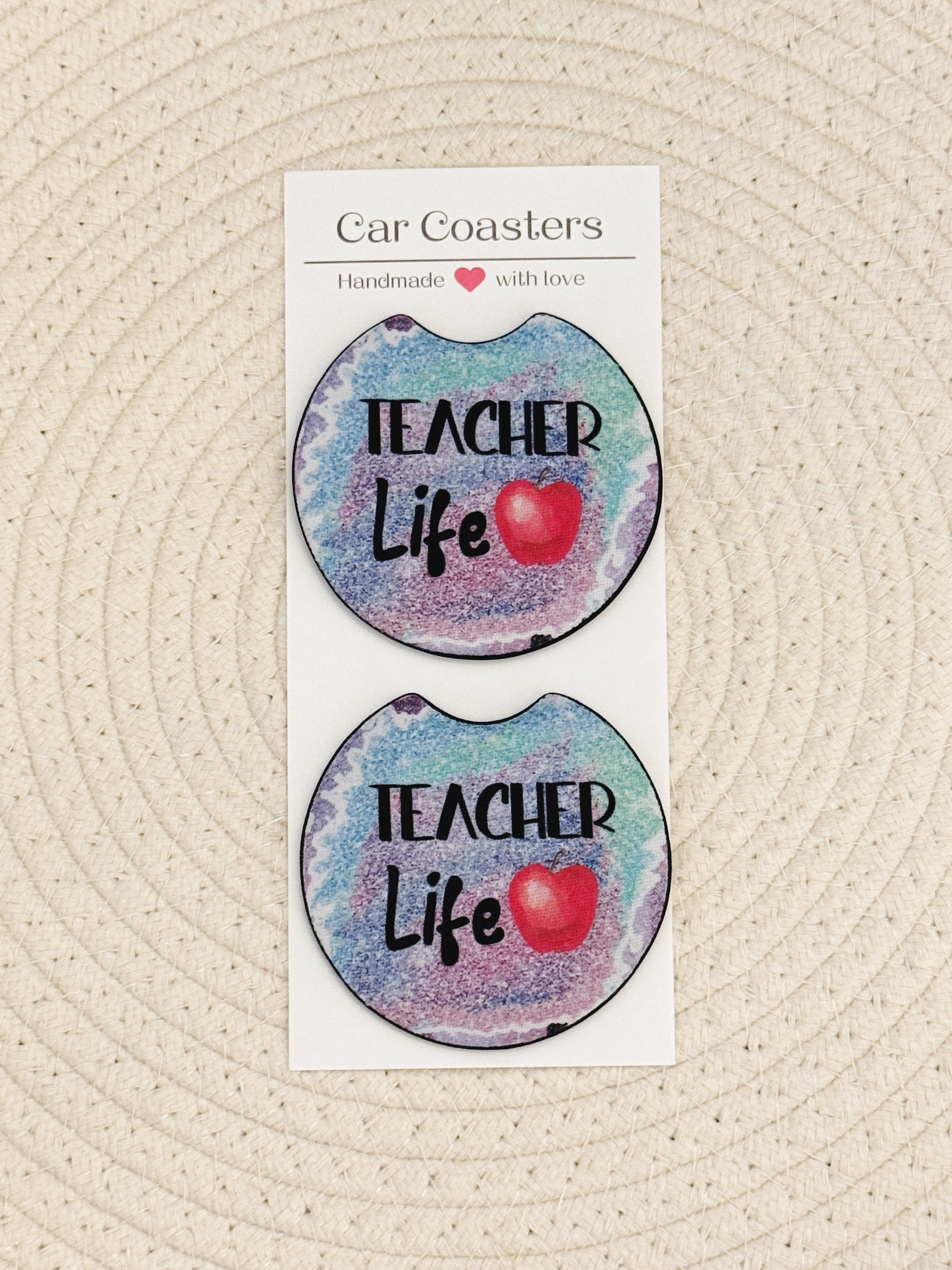🍎 Teacher Life Car Coasters – Handmade with Love